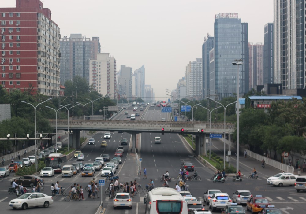 Après un voyage de 10h15 via Air China, nous voilà enfin arrivés à Pékin. L’aéroport est énorme, nous passons le contrôle de l’immigration, on peut noter la personne qui s’occupe de nous vu qu’il y a un petit boitier avec des smileys qui vont de mécontent à très satisfait. L’agent qui s’occupe de nous semble s’en moquer car il ne fait aucun effort pour être aimable. Après un passage aux toilettes (ceux-ci sont bien séparés par des murs, ouf!), nous prenons une navette façon métro ligne 14 pour rejoindre l’endroit où récupérer nos bagages. Une fois ceux-ci récupérés, nous cherchons un moyen de partir d’ici, nous avions prévu de prendre le métro plutôt que le taxi, apparemment propice aux arnaques en tout genre. D’ailleurs, un chauffeur se jette sur moi dans le hall, je l’ai donc gentiment envoyé balader. Nous trouvons assez rapidement l’airport station et après une bonne demie heure de trajet, nous rejoignons le métro, plutôt propre avec des écrans partout diffusant des images du défilé militaire récent (vous avez dit propagande?). Nous galérons pas mal à comprendre le système de tickets. Nous en prenons un premier, et après un scan de nos bagages pour rentrer dans la rame (système mis en place pour les jeux olympiques de 2008), nous voilà dans le métro. On nous dévisage pas mal, enfin ceux qui n’ont pas les yeux rivés sur leurs smartphones! Faut dire qu’il n’y a pas des masses de touristes dans le coin. On a plusieurs changements, le temps de trajet paraît long, sûrement la faute à la fatigue et au sac à dos qui commence à peser lourd. Enfin, nous arrivons à destination, mais là, surprise! Notre ticket ne nous permet pas de sortir, la machine le refuse. Nous allons donc à un guichet et moyennant quelques yuans, on nous remet un ticket juste pour sortir de la station. Là c’est effrayant, contrairement au métro où il y a de l’anglais, tout est en chinois, et rejoindre l’hôtel nous paraît vraiment difficile. J’ai un peu regardé le trajet sur google maps il y a quelque jours, mais bon.. On se lance, on marche pas mal et nous constatons que le quartier est plutôt moche, il fait chaud mais pas de ciel bleu. Traverser la route est une sacrée paire de manches, les voitures ne respectent pas les feux, les vélos et les scooters non plus et en plus, ces derniers ne font pas du tout de bruit (électriques?) donc il faut être vachement vigilant. Après un certain moment, nous décidons d’aller demander dans un hôtel si nous sommes bien sur le bon chemin, enfin nous tendons la réservation au final car l’anglais s’avère inutile ici. Une dame nous accompagne gentiment dehors et nous fait des signes pour nous expliquer la route à suivre. 5 minutes après, nous voila enfin arrivés!
